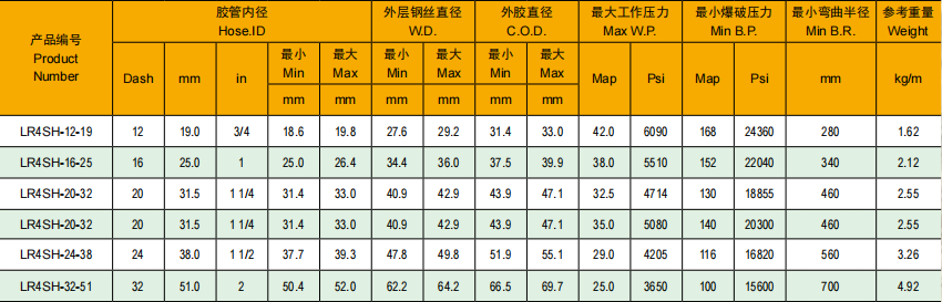 應(yīng)用標(biāo)準(zhǔn):GB/T 10544 4SH,EN 856 4SH,MT/T98 4SH