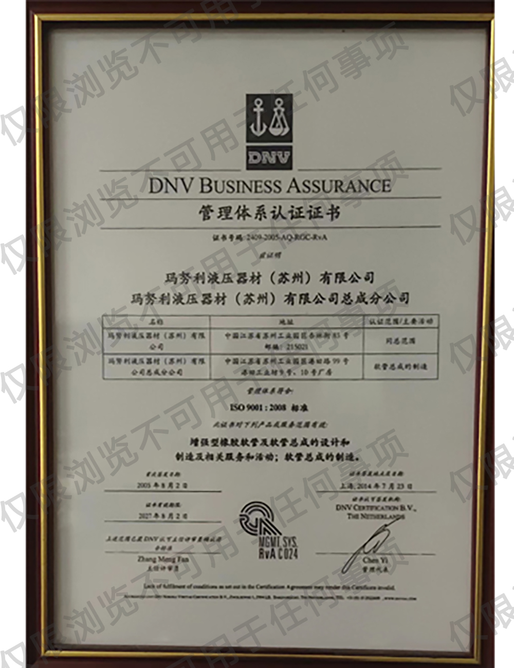 管理體系認(rèn)證證書