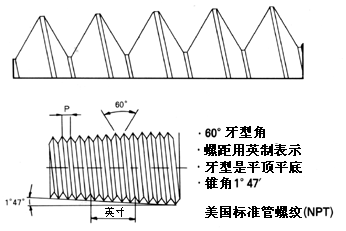 管螺紋:英制PS、PT、PF ;美制NPS、NPT、NPTF、NPSM