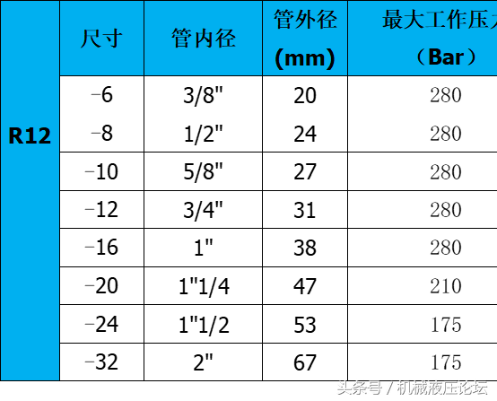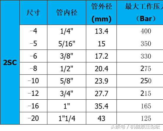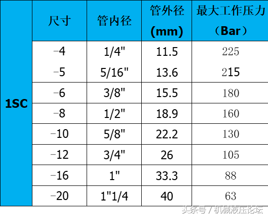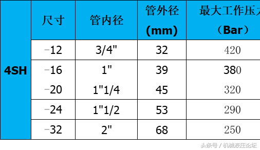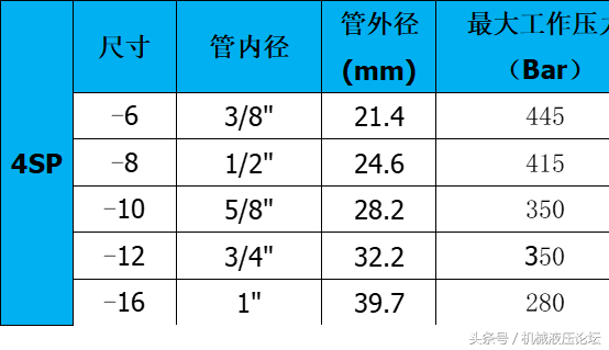 附:常用液壓膠管內(nèi)外徑及最高工作壓力參數(shù)