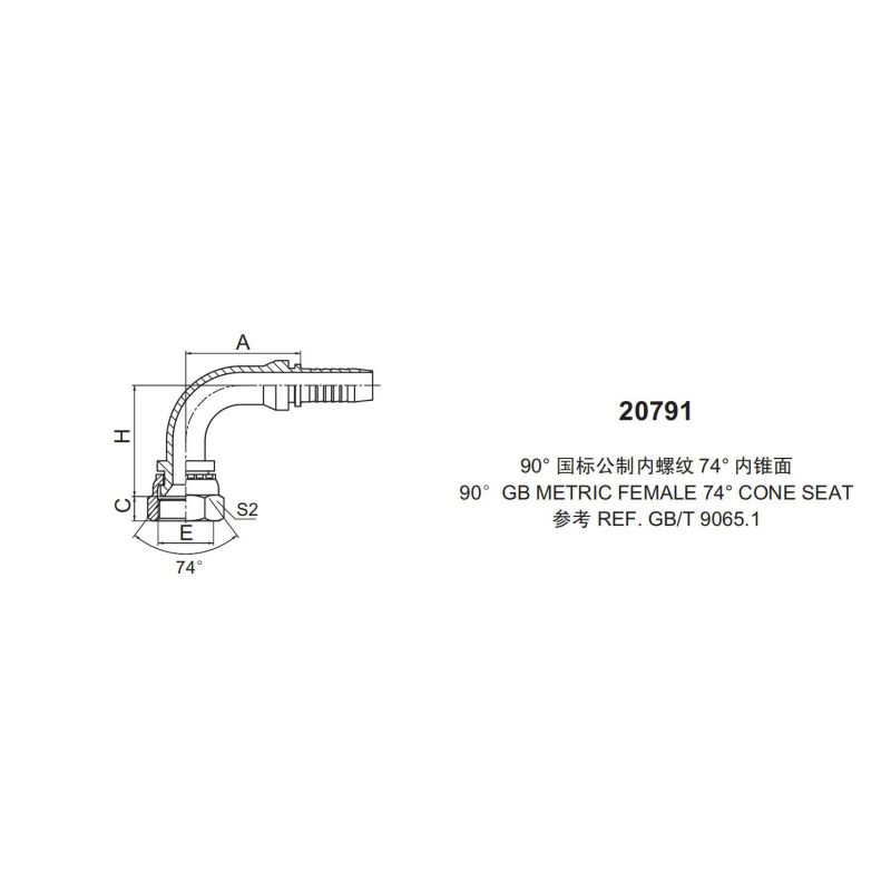 永華標(biāo)準(zhǔn)扣壓式接頭 2079190國(guó)際公制內(nèi)螺紋 74外錐面90 GB METRIC FEMALE 74 CONE SEAT參考標(biāo)準(zhǔn):REF.GB/T 9065