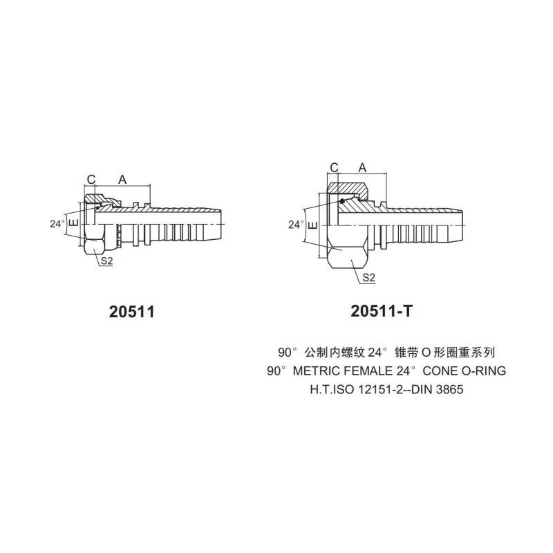 永華標準扣壓式接頭 2051190公制內(nèi)螺紋 24錐帶O形圈重系列90 METRIC FEMALE 24 CONE O-RINGH.T.ISO 12151-2-